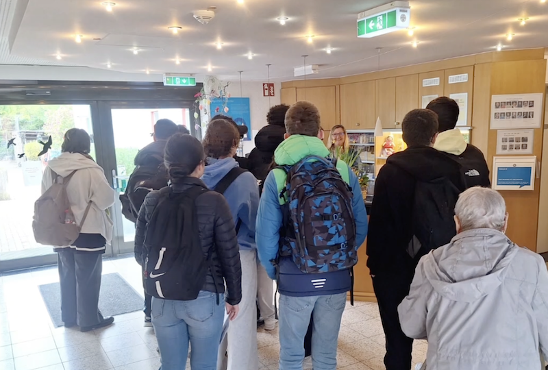 Der Philosophiekurs des Jahrgangs 10 von Frau Rabe überbrachte dem nahegelegenen Seniorenheim, der Diakonie Joachim-Neander-Haus, Frühlings- und Ostergrüße verbunden mit einem Einblick in das Arbeiten und Leben im Seniorenheim. Das Miteinander machte allen Freude und es entstanden viele schöne Gespräche.
