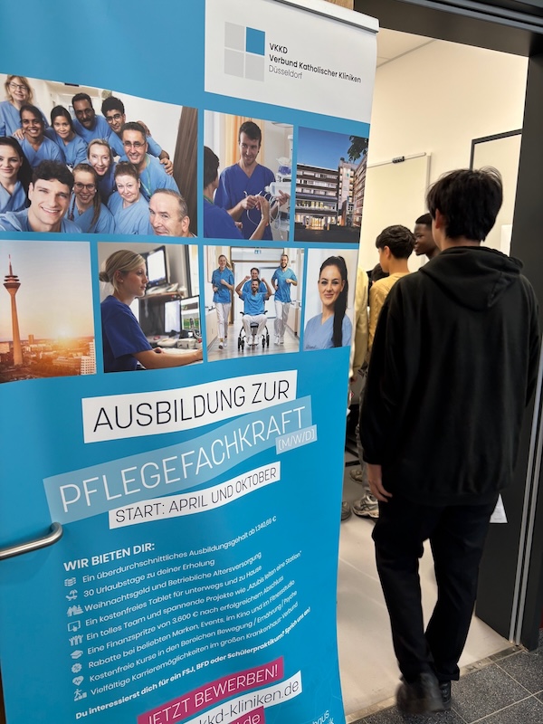 Etwa 15 Betriebe wurden von engagierten Auszubildenden kompetent vertreten. Unter den Firmen waren unter anderem die Versicherungsgesellschaft Provinzial, der Dachdeckerbetrieb Dächer für Düsseldorf, der Verbund katholischer Kliniken, das Oberlandesgericht, die Wirtschaftsprüfungsgesellschaft Deloitte, die Großmarkt-Kette Handelshof, das Immobilien-Facility & Management-Unternehmen ISS und das Industrieelektrik-Unternehmen Mitsubishi Electric.