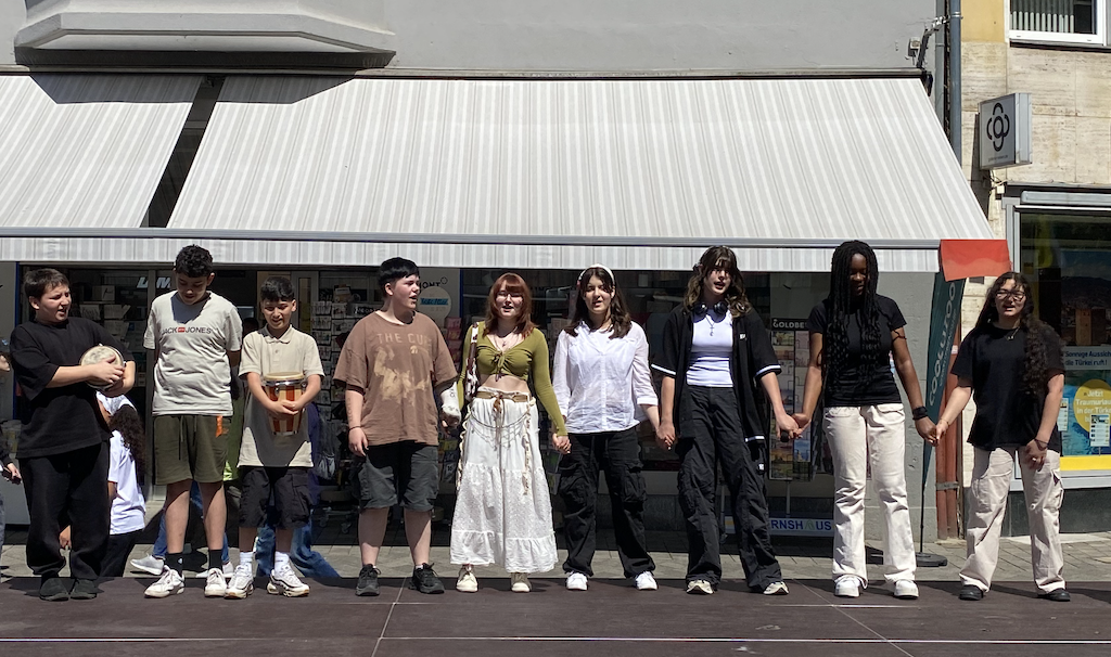 Ein Szenario, das vor allem jungen Menschen den Boden unter den Füßen wegziehen kann – was die Schülerinnen und Schüler unserer Stufe 8 bei ihrem Besuch des Stücks durchaus aus ihrem eigenen Leben wiedererkannten . In „The Drop“ sind es Joe, Luise, Eleni, Kayra und Benny, die sich durch quälende Tage kämpfen. Lockdown-Frust, Ängste und soziale Isolation gipfeln in Bennys Ausraster bei einer Rave-Party. Und während er im Krankenhaus im Koma liegt, kämpfen seine Freunde um ihre eigene körperliche, psychische und soziale Gesundheit.