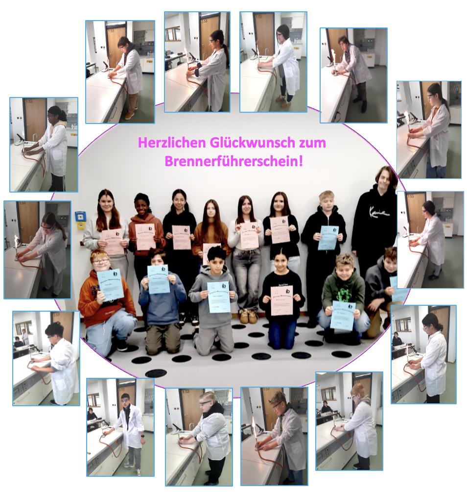 Die SiebtklässlerInnen bestanden ihre Prüfung vorbildlich und dürfen nun im Chemieunterricht unter Aufsicht selbstständig mit dem Bunsenbrenner arbeiten. Herzlichen Glückwunsch!