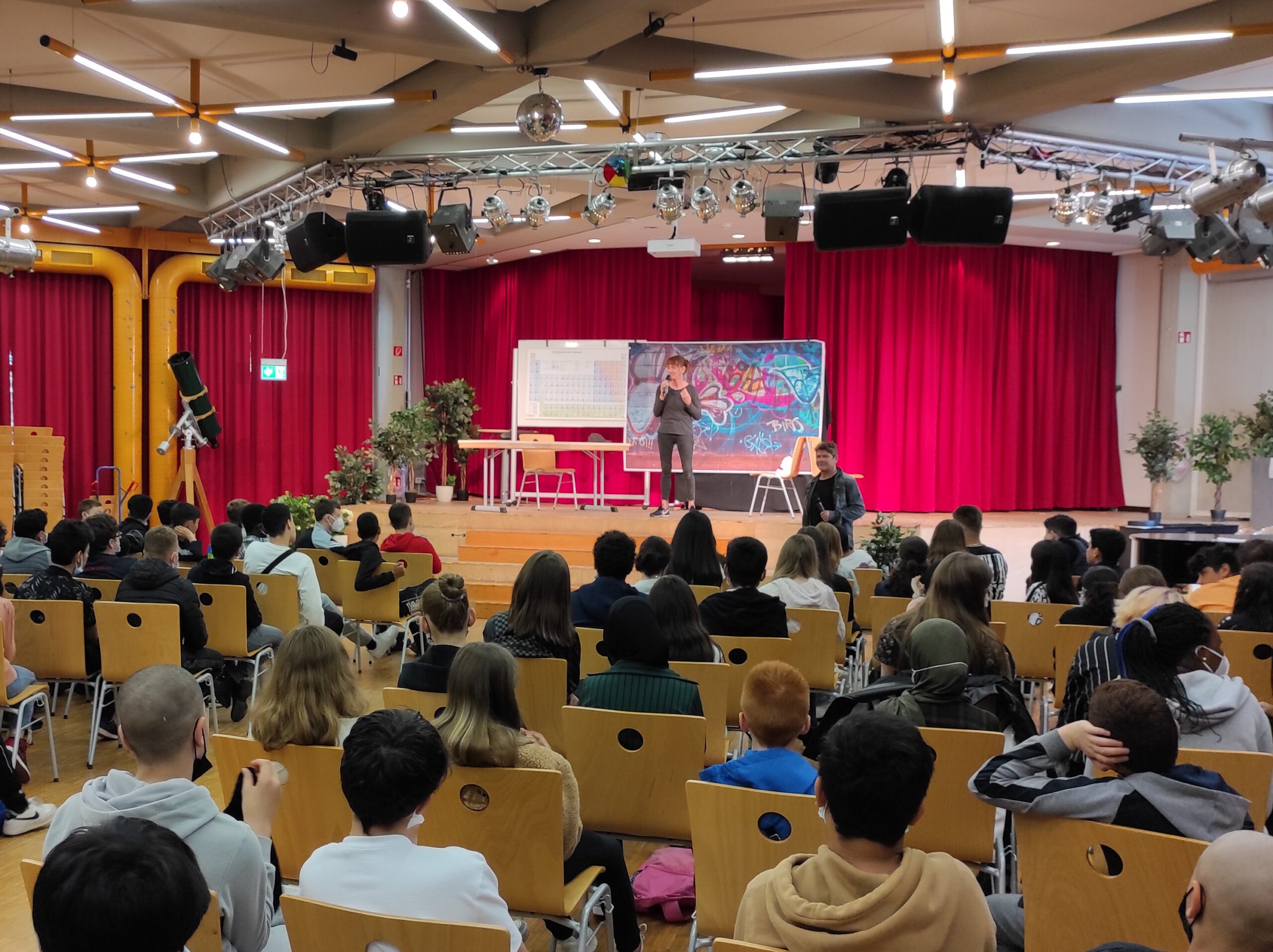 Vom 24. bis 26.Januar 2023 wurden Filme in der Aula gezeigt, Kolleg:innen aus den Naturwissenschaften und der Schulsozialarbeit führten Workshops zu Spiel-, Computer und Handy-Sucht durch und demonstrierten im Chemieraum die Folgen des Rauchens .
