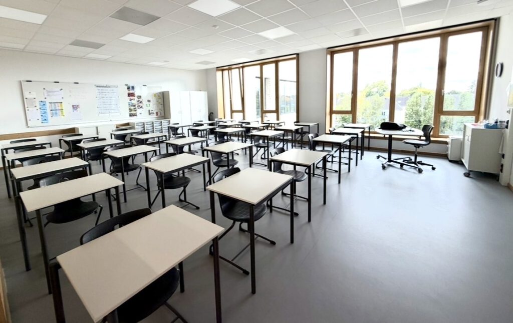 An unserer Schule gibt es das Cluster-Prinzip. Jede Stufe ist in einem eigenen Cluster untergebracht. Im Cluster gibt es dann das Klassenraumprinzip.